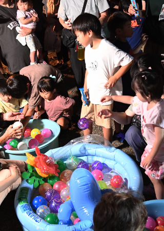 この夏まつりは、お子さまの夏休みの思い出の一つになればと、明星神社総代の有志が企画したものです。その思いにふさわしく、親御さんとご一緒の小さなお子さまや 友達同士で来場されたお子さまも多く、用意した花火やゲームで楽しいひと時を過ごされていました。